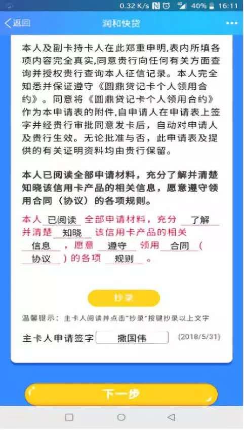 至此點(diǎn)擊申請(qǐng)單簽訂,線上貸記卡申請(qǐng)就完成了!