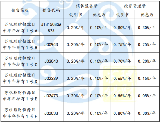 為回饋客戶,管理人自 2023 年 10 月1 日起,對“蘇銀理財恒源融盈 1 號半年持有”理財產(chǎn)品的銷售服務(wù)費率、投資管理費率給予優(yōu)惠,具體安排如下: